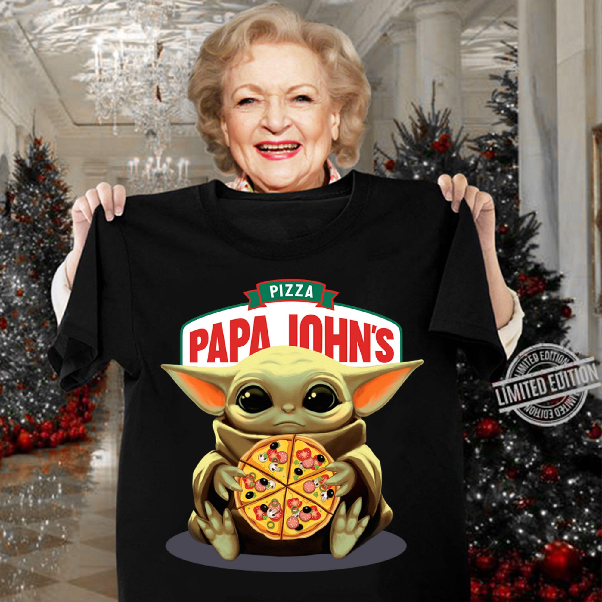 Custom Star Wars Baby Yoda Hug Pizza Papa Johns T-Shirt